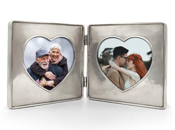 This beautiful 'my loves' double Cuore Heart pewter frame is the perfect way to enhance your special images of special people in your life - and why not make it even more special with our engraving service?
